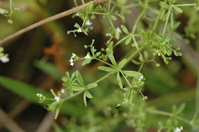 I went to an Oak dominated woods and found a dozen species along a single path. Besides oak and hickory, one should check the leaves on every type of plant. The clue is to find leaves that have been chewed on like this. The plant is Dogbane or Indian Hemp, Apocynum, a Milkweed relative. Right in the center I could see the possible suspect peeking through.