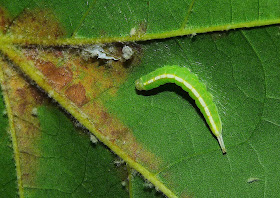 In case I didn't mention it earlier, all moths with green coloration will fade to gray in a collection over time. Even fresh though, the female can look all gray. The males on the other hand are all green, and look virtually identical to the Drab Prominent I pictured earlier. In the Drab, the zig-zag lines end in a black tip. On this species, those lines end in white tips.